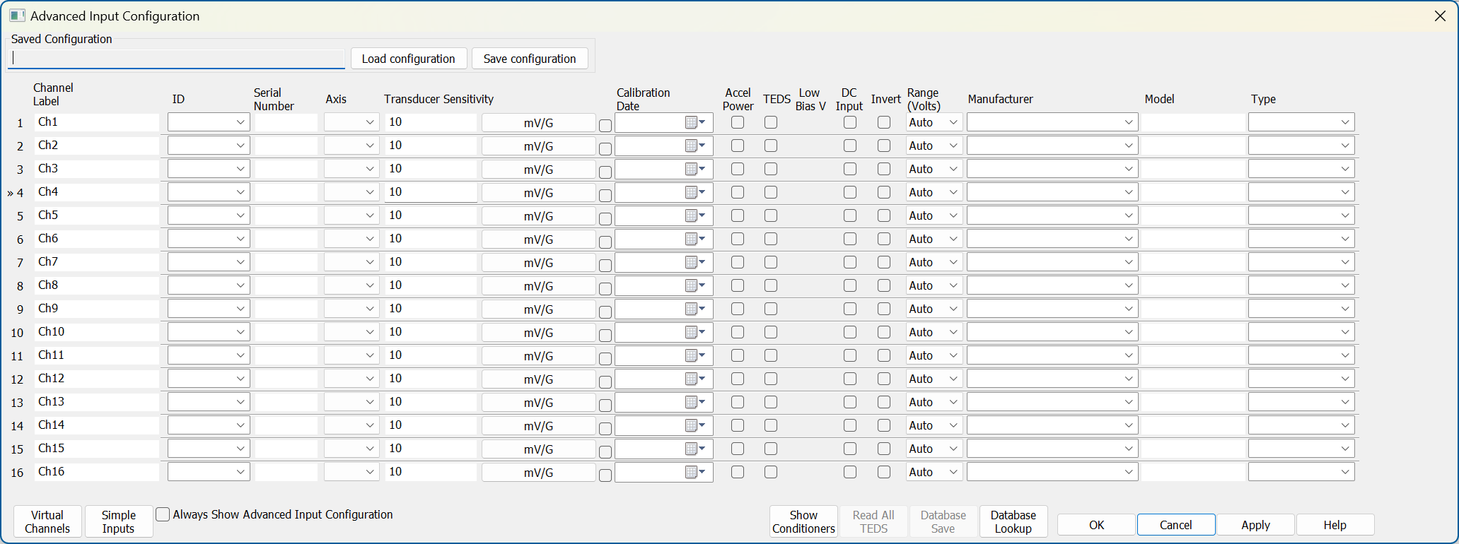In VibrationVIEW, the Transducer Database contains a list of transducers for easy input configuration.