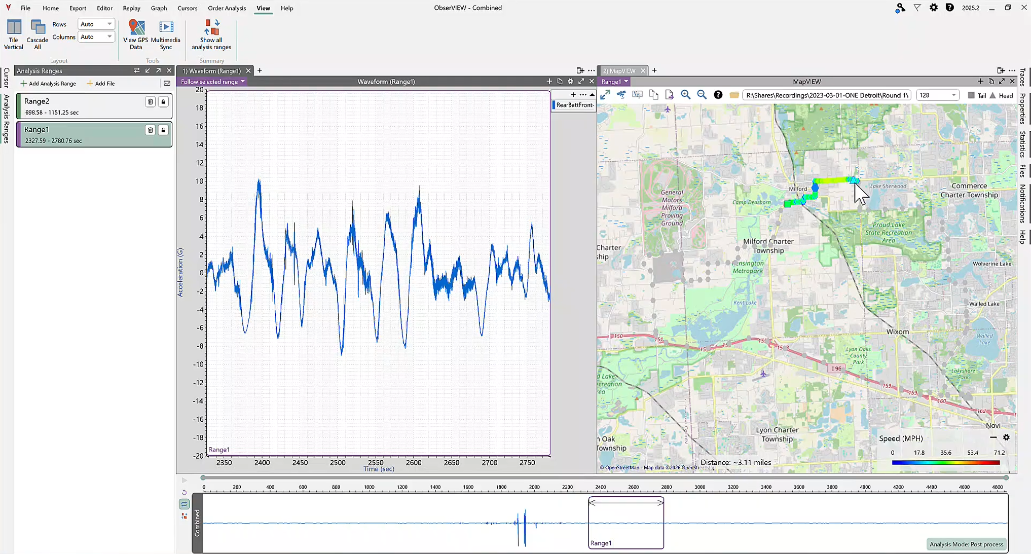 The ObserVIEW basic license allows the user to view the GPS data associated with the time waveform. The Advanced license with Multimedia Sync is required to synchronize the data.
