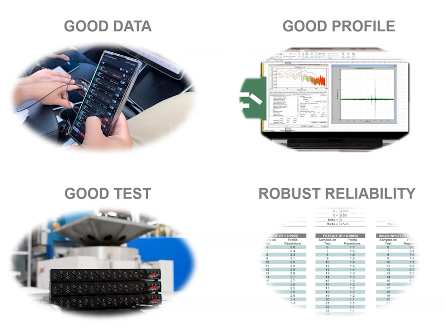 Engineers in industries such as transportation, automotive, aerospace, and packaging use data recordings throughout the product development cycle for proof-of-concept qualification, design evaluation, and process validation. Field and physical test data are also essential for confirming digital twin boundary conditions.